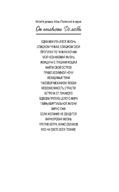 Sometimes from hatred to love is one step, and sometimes it takes a lifetime. How to pass this difficult path without losing yourself? Heroes of sharp melodramas Alla Polyanskaya from the series "From Hate to Love" without fear looking into the future, not looking back at the past, and love passionately, as if for the last time!