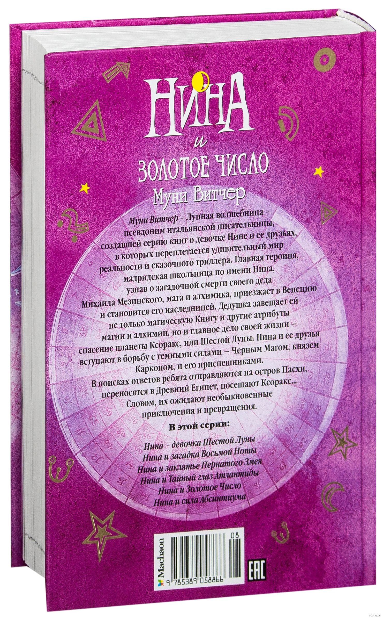 Mooney Witcher - The Moon Sorceress is the pseudonym of an Italian writer who created a series of books about a girl Nina and her friends, in which the wonderful world of reality and fairy-tale thriller are intertwined. The main character, a Madrid schoolgirl named Nina, having learned about the mysterious death of her grandfather Michael Mezinsky, a magician and alchemist, comes to Venice and becomes his heiress. Her grandfather bequeaths her not only the Magic Book and other trappings of magic and alchemy, but also the main cause of his life - saving the planet Xorax, or the Sixth Moon. Nina and her friends embark on a battle against dark forces - the Black Magician, Prince Karkon, and his minions. In search of answers the boys go to Easter Island, travel to Ancient Egypt, visit Xorax... In short, extraordinary adventures and transformations await them.