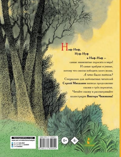 The fairy tale "The Three Little Pigs" came to us from English folk literature. In Soviet times, the writer S. Mikhalkov retold it so accurately that the wolf and the piglets Nif-Nif, Nuf-Nuf and Naf-Naf were immediately loved by the children's public. However, few people know that S. Mikhalkov also composed a sequel to "The Three Little Pigs" especially for very curious children. This book presents just such a version of the fairy tale in drawings by People's Artist of the Russian Federation Victor Alexandrovich Chizhikov.