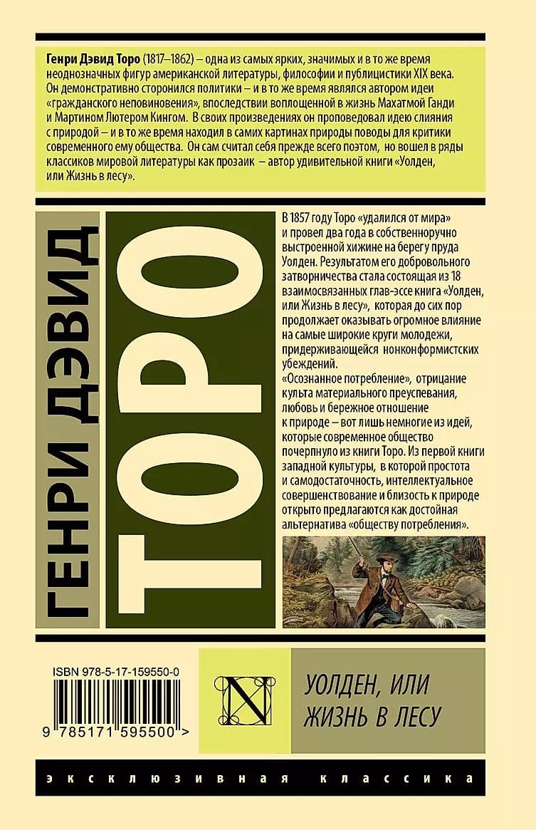 "Conscious consumption", rejection of the cult of material prosperity, love and respect for nature are just a few of the ideas that modern society has learned from Thoreau's book. From the first book of Western culture in which simplicity and self-sufficiency, intellectual improvement and closeness to nature are openly proposed as a worthy alternative to the "consumer society".