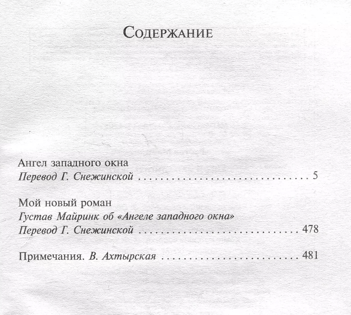 "Angel of the Western Window" - the most significant work of the Austrian esoteric writer Gustav Mayrink. The author presents us his characters immortal: they live and act in the Shakespearean era, in the XX century and in the otherworld, where their true nature is revealed. At the center of the narrative is the fate of a real person English natural philosopher, mathematician, astronomer and alchemist John Dee, inextricably intertwined with the fate of his distant descendant, who eventually manages to dispel the spell of evil forces and in full consciousness to cross the threshold of otherworldliness. Hermetic symbolism, Kabbalah, spiritualism, and alchemy fill the novel.