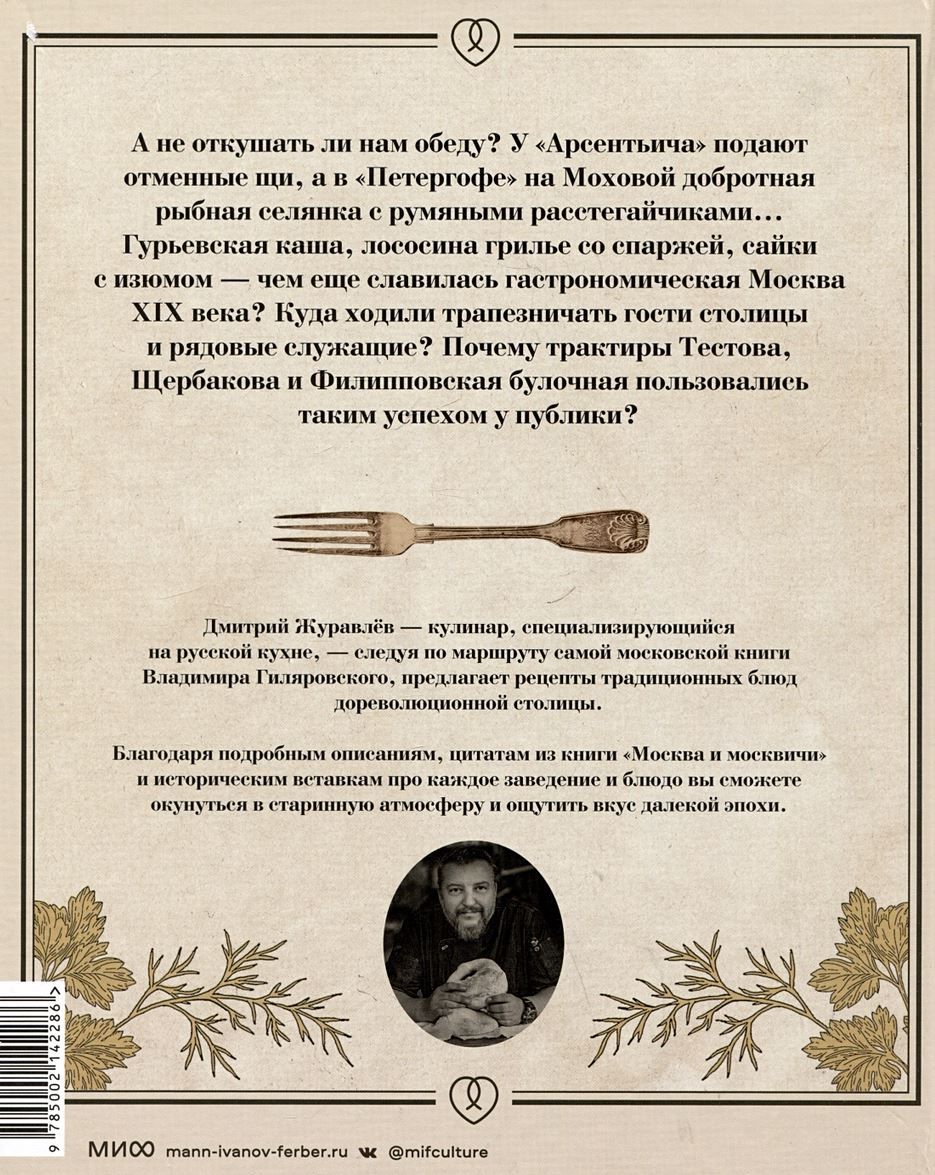 Thanks to detailed descriptions, quotations from the book "Moscow and Muscovites" and historical inserts about each establishment and dish, you will be able to plunge into the ancient atmosphere and taste the flavor of a distant era.