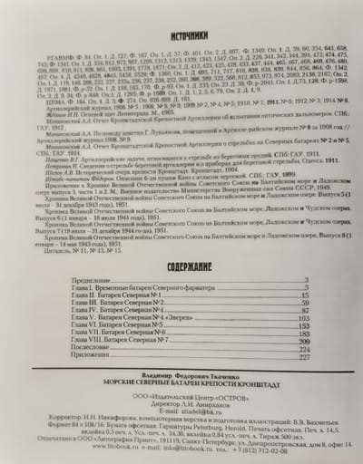 The book tells about the history of construction and operation of defensive structures of the fortress Kronstadt, built in the last quarter of the XIX century to protect the Kronstadt Northern fairway.