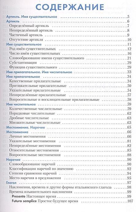 This edition contains basic information about Italian grammar. The book is intended for all those who learn or use Italian in their work, from schoolchildren to professional translators and teachers. For convenience, the reference book is divided into sections named by parts of speech. The book is written in an accessible and understandable language, the material is illustrated with examples for clarity.