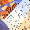 Hidden in the endpaper pocket are coloring pages for memorizing numbers and an entire cardboard zoo: ten 3D animal figures that you can count—and solve the first simple problems in the game.