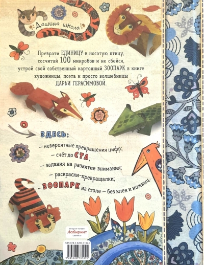 In Daria Gerasimova's fun poetry school, you can now learn not only letters but also numbers! Each number from 1 to 10 on the pages of the book turns into a funny creature: five into a fox with a fluffy tail, four into a bird, two into a dragon—and each has a poem about it, making memorizing the numbers super easy!