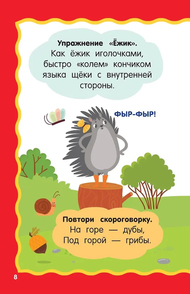 Is your child bored? No problem! It's easy to entertain a little one—fun onomatopoeia, tongue twisters, riddles, tongue exercises, and games with sounds and words will help. A multitude of activities await your little one. For example, you can do tongue exercises, finish a word, make up a story based on a picture, sing a sound like a song, or compete to see who can pronounce a tongue twister the fastest without hesitating. Invite your little ones to create new games based on the pictures in our book—they'll be delighted!