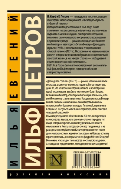 "The Twelve Chairs" (1927) - a novel written almost a century ago, and it seems to be quite recent. It is quoted by everyone, even those who have not read a page of the text and have not seen a single film adaptation, and there have been many. Ostap Bender, the Great Combinator, has become a household name, and monuments are erected to him all over Russia. The story of how Bender and his "partner" Kisa Vorobyaninov try to find the diamonds of Madame Petukhova, hidden in one of the 12 chairs of the furniture set, has become a truly "folk classic". The novel was reprinted in Russia almost 200 times, it is translated into many languages, although it is quite difficult to convey the humor that is saturated with this amazing in every sense of the book. The book, which is still not completely solved: why Valentin Kataev proposed this plot to two little-known journalists from Odessa, whether the heroes have prototypes, who hides behind the figure of Ostap Bender? Perhaps these riddles will remain riddles forever. And "the session continues, gentlemen of the jury"!