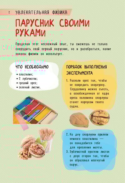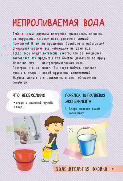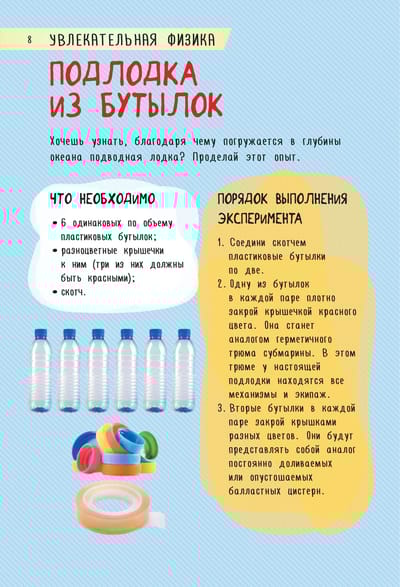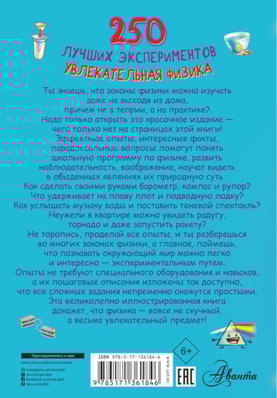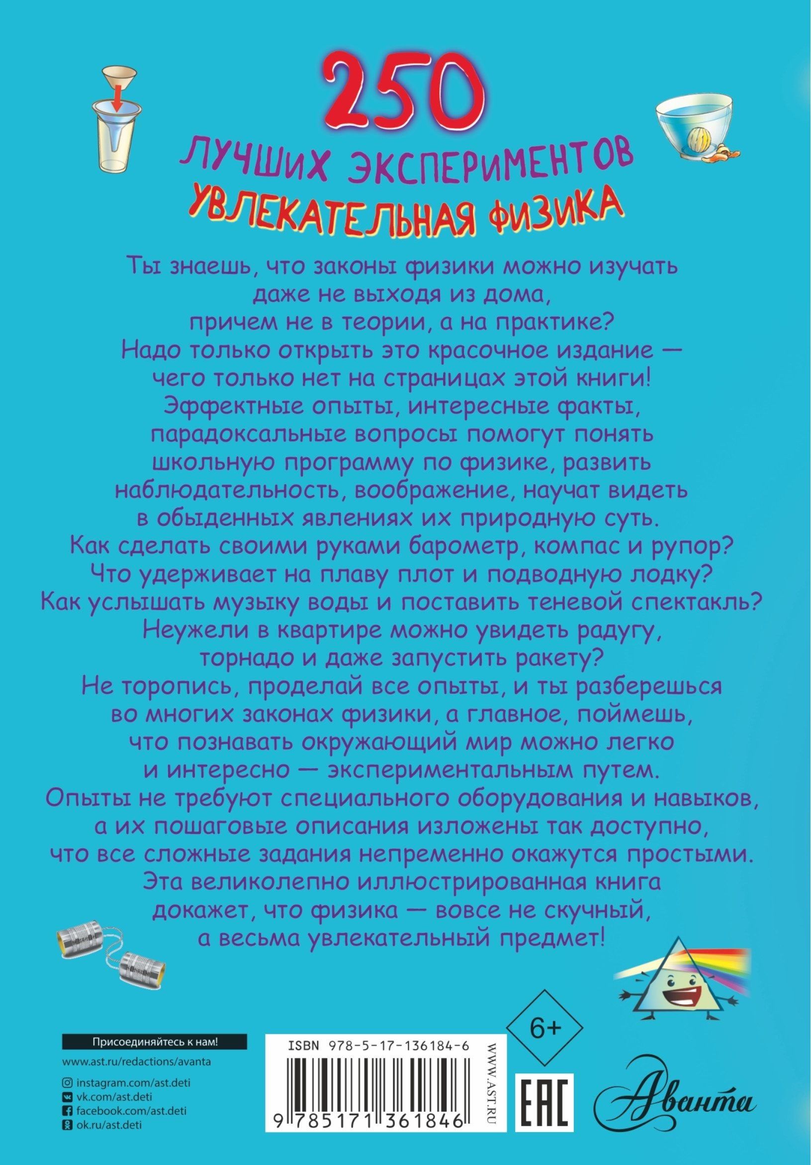 Want to test your knowledge of physics? Now you have such an opportunity - the best scientific experiments are at your disposal! This publication contains step-by-step illustrations and descriptions of the most interesting experiments. Even the youngest readers can carry them out, which will be an excellent reason to get acquainted with the most complex laws of physics. Many evidence-based, educational and at the same time fun experiments can be done both at home and on the street, observing various phenomena occurring around us. The most diverse laws of physics are explained here in the simple language of a visual example, and the results of the experiments and explanations for them are presented so clearly that everything complex immediately becomes clear. Fascinating experiments will help to master the school physics program, develop imagination and observation, teach to see the natural essence in everyday phenomena.