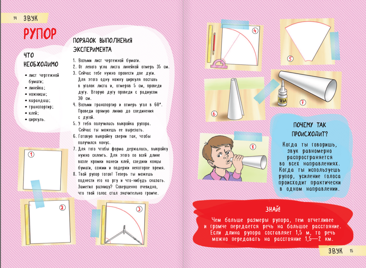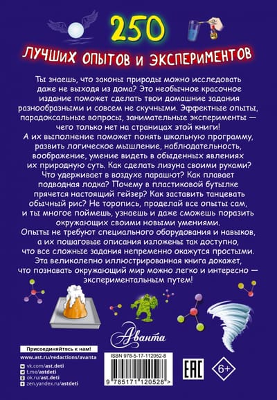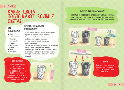 Don't know what to do? Maybe it's time to try your hand at science? The best science experiments are at your disposal! This edition contains step-by-step illustrations and descriptions of the most interesting experiments that even the youngest readers can do. They will be a great way to familiarize yourself with the manifestations of the laws of nature. Many proving, educational and yet fun experiments can be done outside, in the kitchen and even at the desk. Uncomplicated experiments will help to master the school program, develop logical abilities, imagination, the ability to see in ordinary phenomena of their natural essence. Simple language of visual examples here explain the complex laws of physics, chemistry and biology. And the results of experiments and explanations for them are set out so accessible that everything complex is sure to become simple.