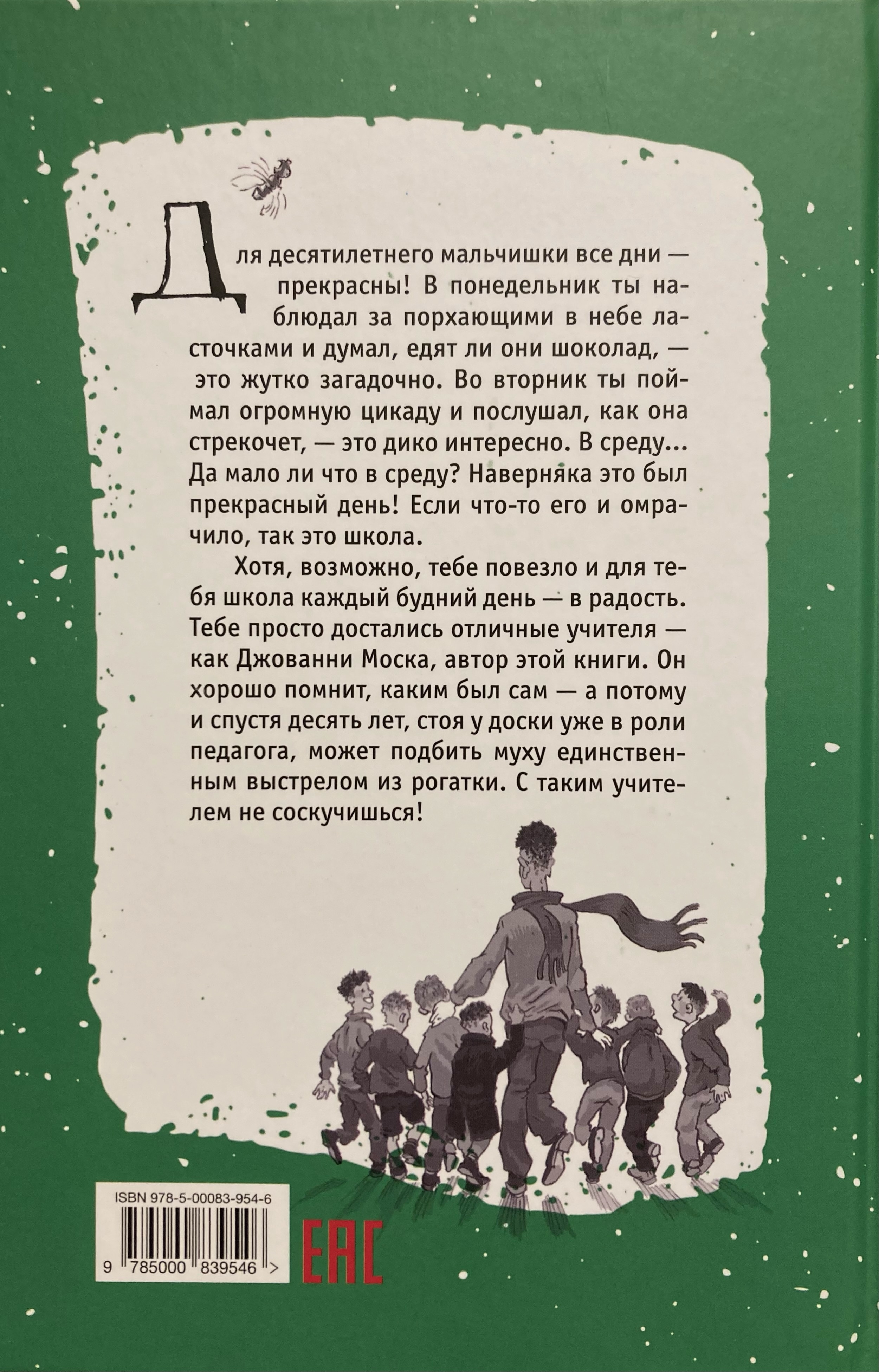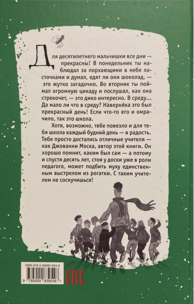 Although, perhaps you were lucky and for you, school is a joy every weekday. You just had great teachers—like Giovanni Mosca, the author of this book. He remembers well what he was like—and that's why, ten years later, standing at the blackboard as a teacher, he can shoot a fly with a single shot from his slingshot. You'll never get bored with a teacher like that! Italian writer and journalist Giovanni Mosca recalls his childhood and his experience teaching fifth-graders. No matter what the era, his observations are precise and his words are true. He was a student in an ordinary Italian school in the 1910s, a teacher in the 1930s, and became famous in our country in the 1980s thanks to Gennady Khazanov and Yevgeny Morgunov in the film magazine "Yeralash." And now it's the 1910s again—and Mosca's school sketches are just as modern, captivating, and funny!
