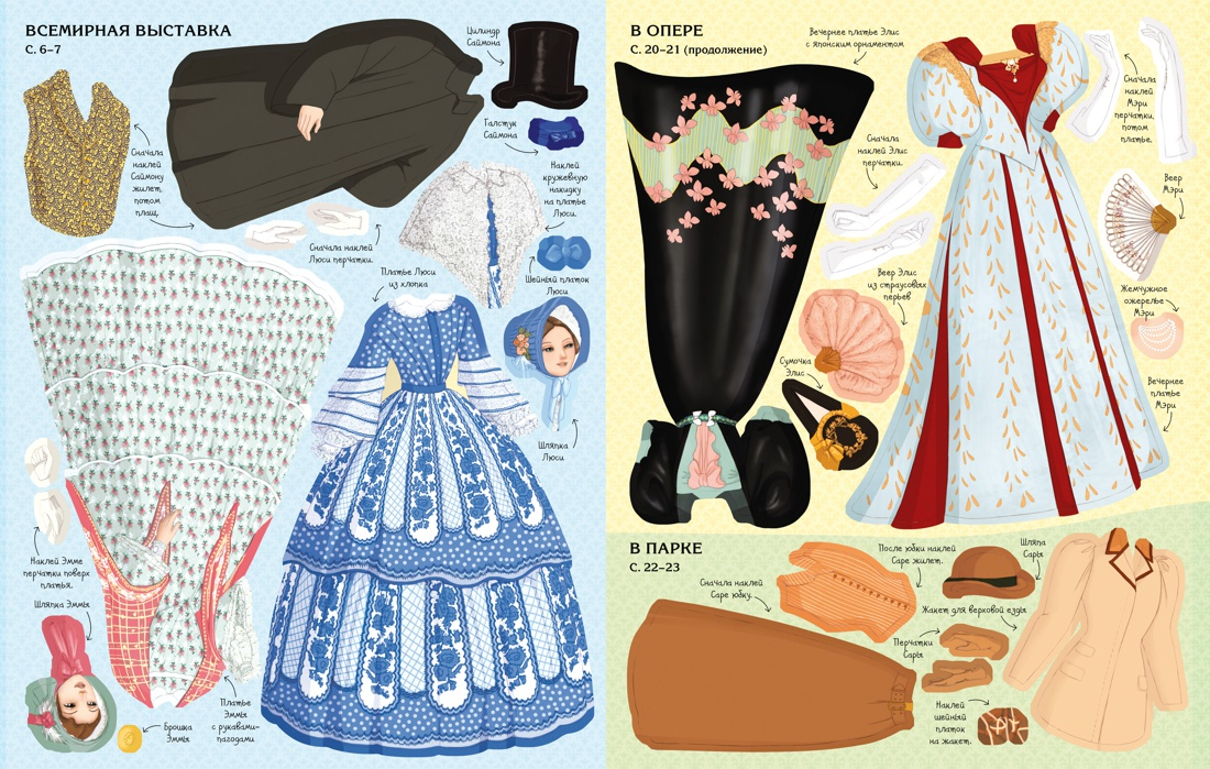 Take a trip to old England! The book will tell you how gentlemen and ladies dressed in the 19th century. You'll find a variety of toilets from silk ball gowns to bathing suits. Read and play! Develop attention, imagination, fine motor skills and artistic taste. Playing with books from the series "Supernakleyki", the child develops fine motor skills, accuracy and sense of beauty. Kind and bright pictures are interesting to look at, and small informative stories help to expand the horizons of young readers. Books are bright and high quality: they have thick pages, glossy paper and a nice cover. The child will be able to play with the book for five hours, and thanks to the convenient format to take his favorite story with him on a trip. "Supernakleiki" will definitely like both children and their parents!