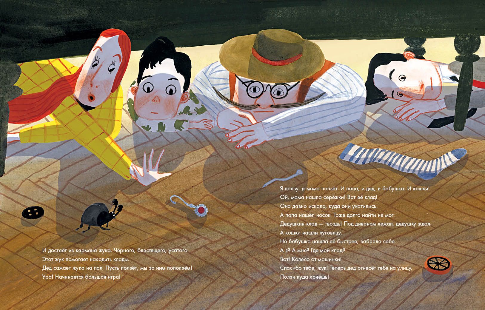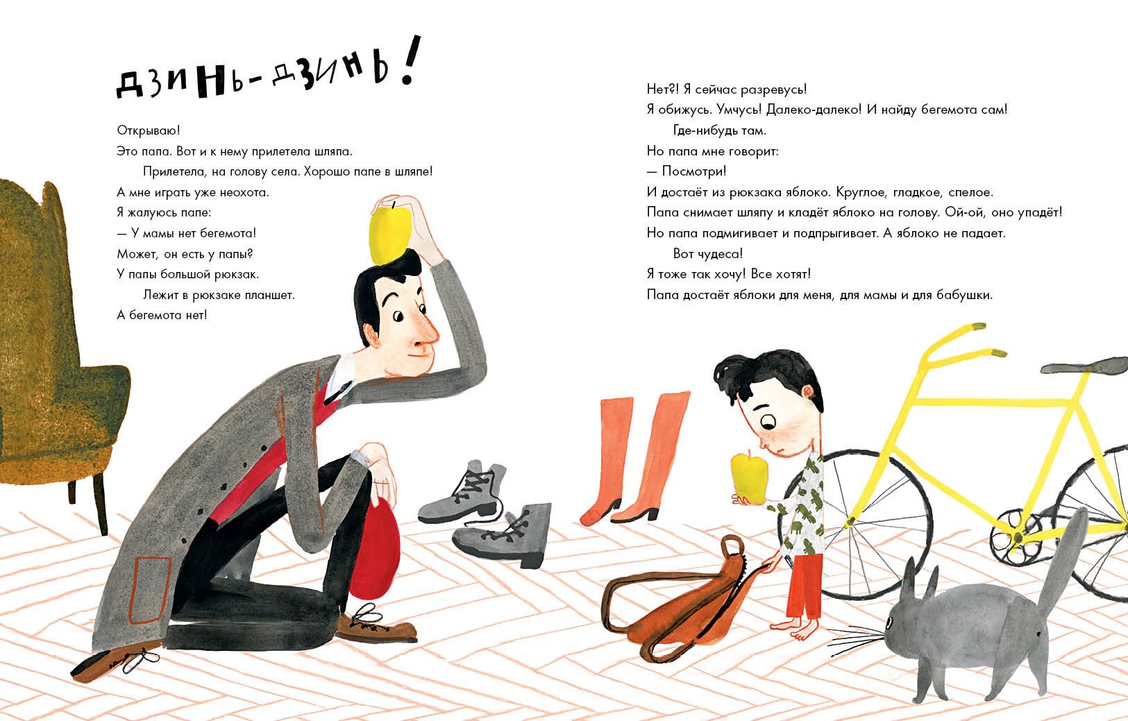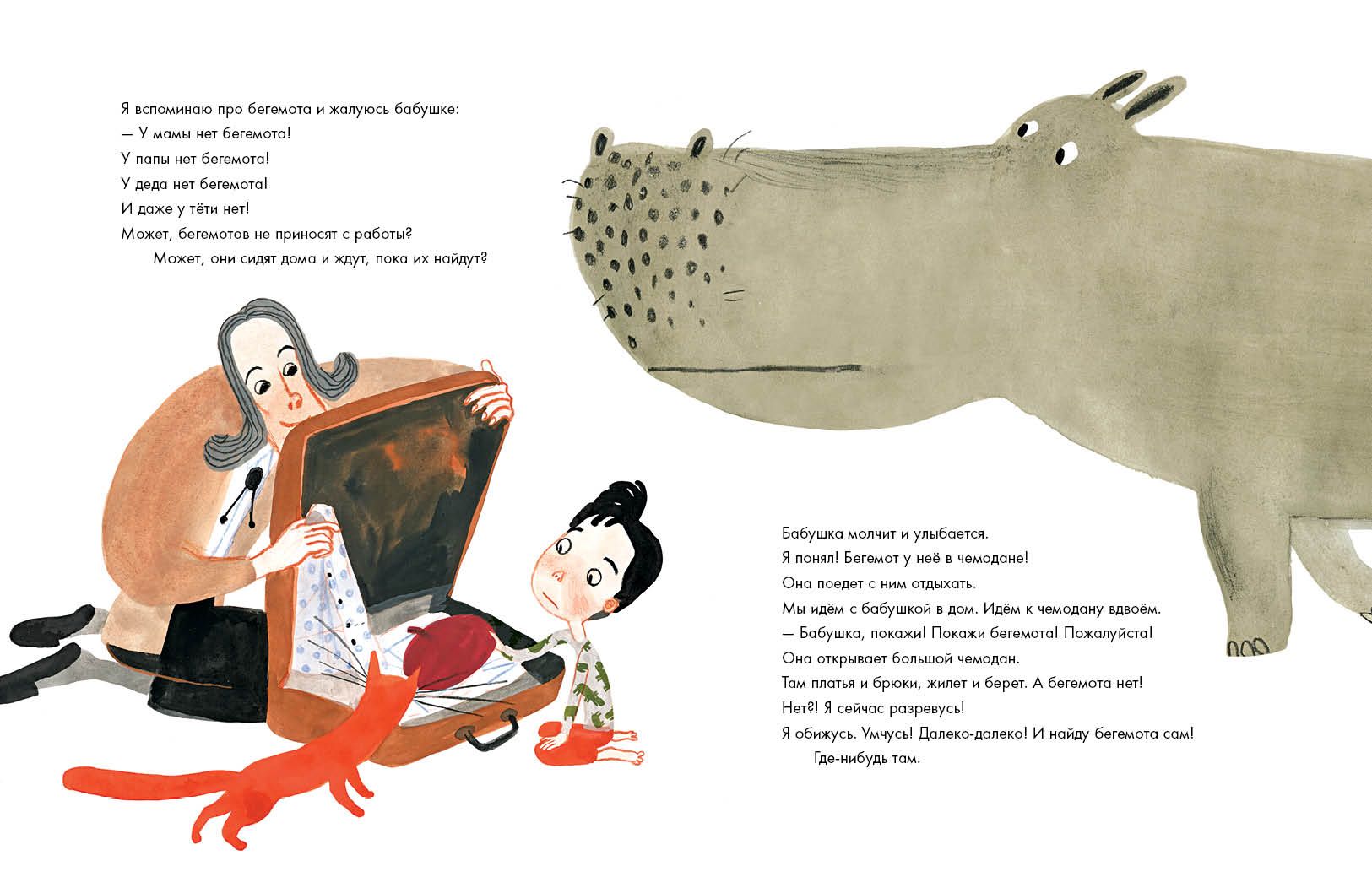 Adults are busy all day long doing their boring adult things. If I had a hippopotamus, a huge, green, beautiful hippopotamus, I would play with it all day long, take it for walks, feed it and ride it. But adults come home from work, and none of them has a hippo: neither mom, nor dad, nor grandpa. What can we do? You can play with this book! Keep your eyes open and you'll find a hippo on almost every page. Can you count them? The game was invented by writer Marina Taranenko and artist Yulia Sidneva