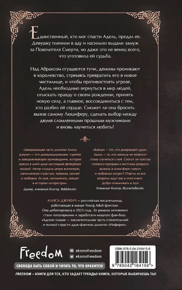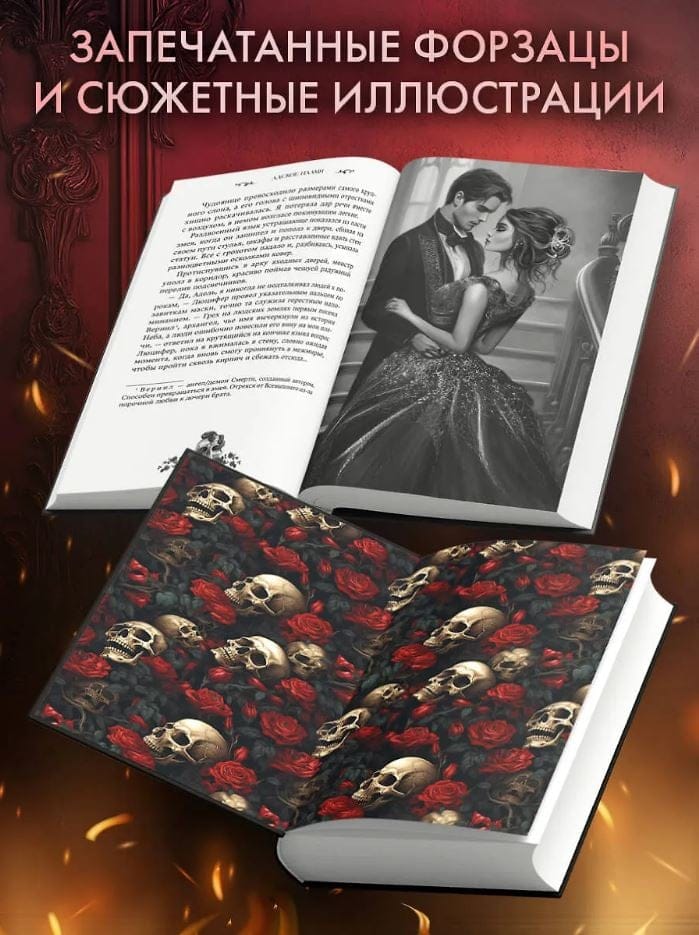 The finale of the Inferno dilogy — a dark fantasy with a strong love story. The tropes of “from hate to love” and “forbidden love” await you under the cover. The story will remind you of the novels “The Kingdom of Sin”, “Belladonna”, as well as the “Infernal Devices” series. A stunningly beautiful edition with sealed endpapers, color inserts, black-and-white story illustrations and a map.