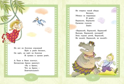 This book presents fairy tales by the famous children's writer Korney Chukovsky. They tell about the kind, brave and selfless doctor Aibolit, who went to Africa to cure sick animals, and about the evil and dangerous robber Barmaley. Little readers will follow the exciting adventures of the heroes with great interest.