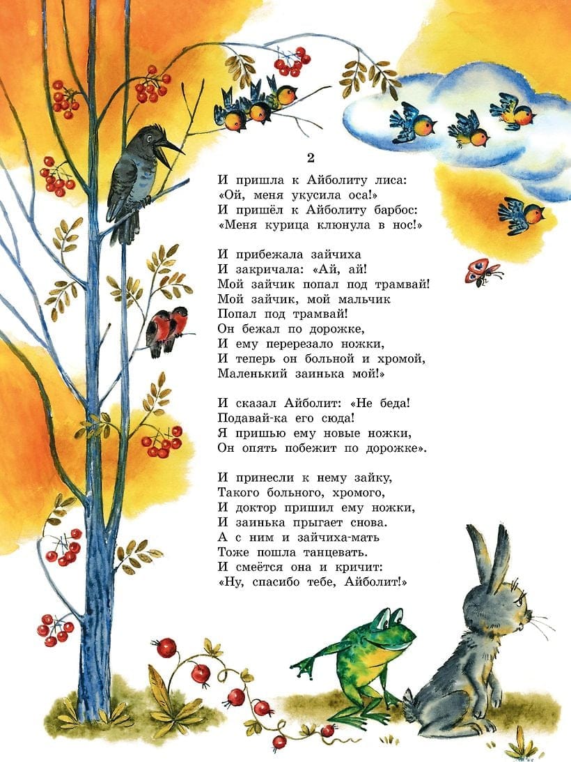 The book includes two fairy tales by K. Chukovsky: “Aibolith” and “Moidodyr”. The publication was illustrated by animated artist, animated film director Vadim Kurchevsky. At the same time, he painted works by S. Marshak, S. Mikhalkov, S. Prokofieva and other classics of children's literature. Bright, dynamic pictures emphasize the cheerfulness of the fairy tales of K. Chukovsky.