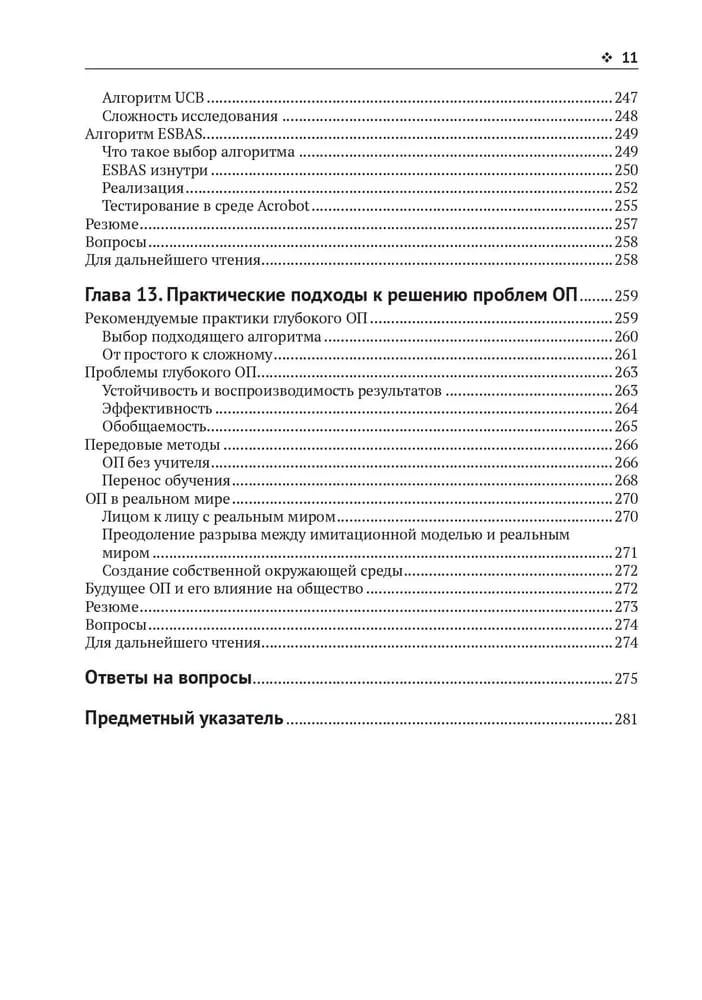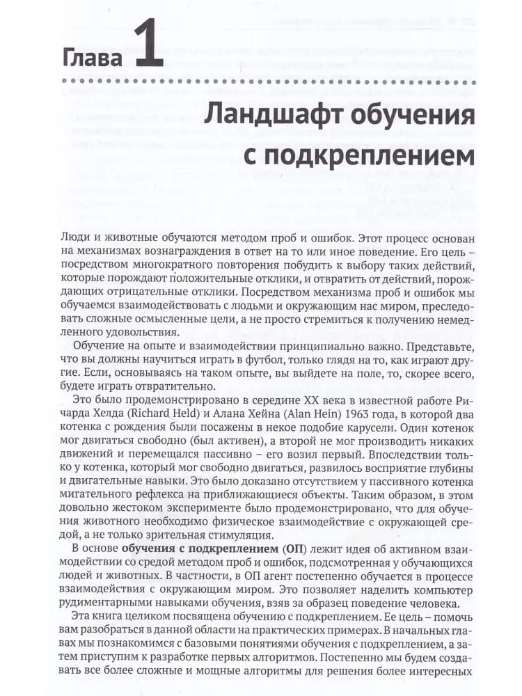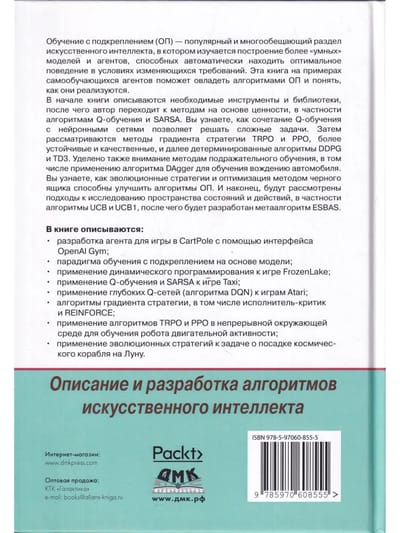 The first part discusses the various elements of OO, its scope, and the tools needed to work in an OO environment. The second and third parts deal directly with algorithms. Among other things, the author shows how to combine Q-learning with neural networks to solve complex problems, describes strategy gradient, TRPO and PPO methods to improve performance and robustness, as well as deterministic DDPG and TD3 algorithms. The reader will learn how imitation learning techniques work, and will be introduced to upper confidence bound-based exploration algorithms (UCB and UCB1) and the ESBAS meta-algorithm. The publication is intended for those who are interested in artificial intelligence research, apply deep learning in their work, or want to master reinforcement learning from scratch. A working knowledge of Python at a working level is a prerequisite.