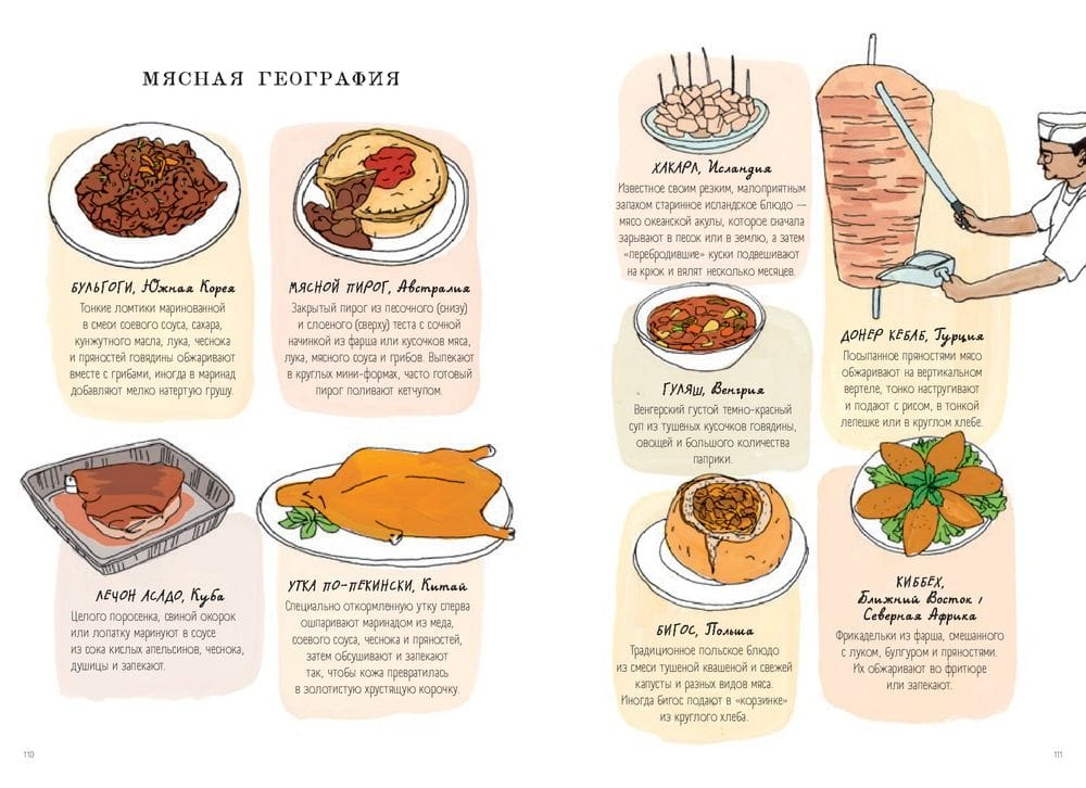 Julia Rothman invites you to embark on an exciting gastronomic journey through the culinary traditions and cuisines of different nations. What does an asparagus fork look like? In which country do they pour banana sauce over deep-fried potatoes? How is a fish fillet different from a fish steak? Treat yourself to an exciting and rewarding read. Julia Rothman invites you to embark on an exciting gastronomic journey through the culinary traditions and cuisines of different nations. The most unusual, and others quite familiar, dishes will decide the fate of world cooking and pamper our taste buds. Stories and unusual facts about food from different parts of the world are complemented by appetizing illustrations. Discover the mystery of the asparagus fork and guess in which country banana sauce is used to pour over deep-fried potatoes? Treat yourself to a fascinating read and be inspired to new culinary experiments!