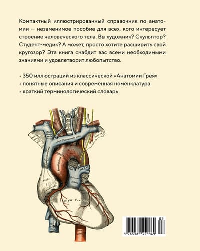 The book contains 350 magnificent color illustrations taken from the classic Gray's Anatomy, the most famous anatomy textbook in the English-speaking world, provided in this edition with concise and clear descriptions. All nomenclature has been brought into line with modern requirements, and the terms used are explained in a short glossary. The compact and convenient format makes this book an indispensable guide for anyone who wants to get a clear idea of the structure and functions of the organs and systems of the human body. Following the order of presentation conceived by Gray, we begin with a description and demonstration of the skeleton, after which we move to more superficial parts of the body, explaining what they consist of, what they are called, what function they perform and how. Each bone, each joint, each organ is shown from different angles and in relation to the tissues and organs surrounding them. We have sought to make the book as accessible as possible to a wide range of readers, and to use the text as a support for the assimilation of the material from the excellent black-and-white and colour illustrations." (Christopher Joseph)
