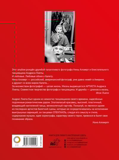 The album of photographs is released to mark the 60th anniversary of the outstanding ballet dancer of the late 20th century Andris Liepa. The twists and turns of the dancer's fate are presented in the works of the famous Russian, American ballet photographer Nina Alovert.