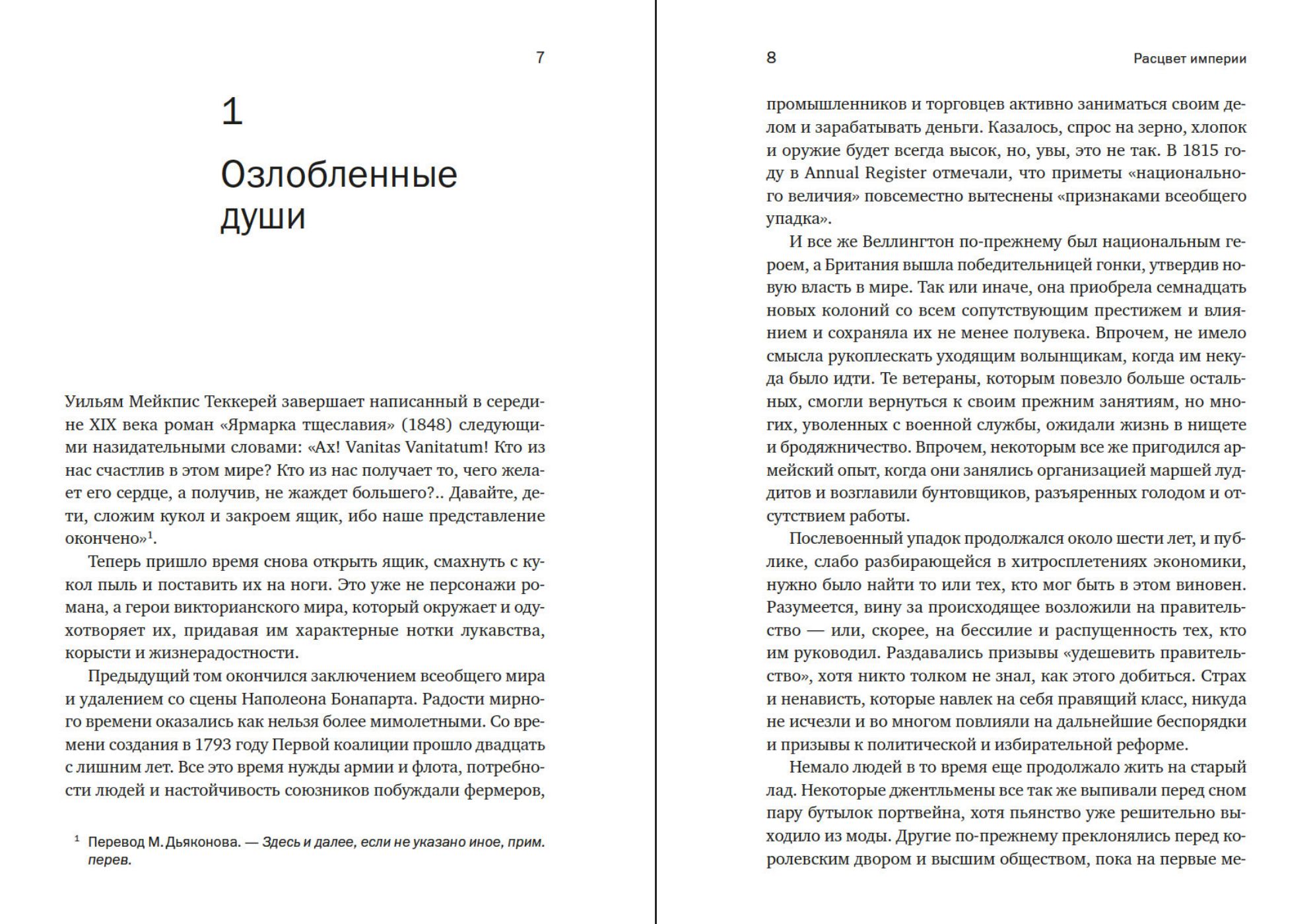 This book covers the extraordinary 19th century, destined to be remembered as an age of technological progress, artistic flourishing and extraordinary changes in all areas of society. The action begins in 1815, when England’s triumph after the Battle of Waterloo gave way to the post-war depression, and ends with the death of Queen Victoria in January 1901. Covering the end of the Regency, Ackroyd takes readers from the accession of the spendthrift George IV, led by the anti-reform Lord Liverpool, to the “Sailor King” William IV, who modernised the political system and abolished slavery. But it was the accession of the still very young Queen Victoria that ushered in an era of rapid innovation. The age of technological progress had arrived: from steam trains to the first telegram. The best of English inventions were on display at the first World’s Fair in 1851. The emergence of the middle class changed the face of society, and scientific advances shook the old foundations of the Church of England and spread secular ideas among the population.