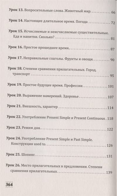 This self-study book uses a special methodology for beginners learning English from scratch. The material is presented from simple to complex, from the verb to be to the conditional mood. Grammatical topics alternate with lexical ones, which develop speech skills. Gradually the skills of asking and answering questions, talking about yourself and people you know, discussing a book you have read, a movie or play you have seen, describing the world around you, communicating with a doctor or the police, etc. are formed.
