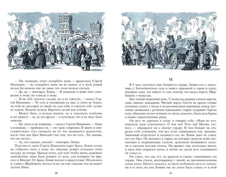 In this edition, the novel is reproduced with charmingly expressive drawings of the People's Artist of the USSR Orest Vereysky. The artist gave almost four years to work on the illustration of Anna Karenina. “These were happy years,” he recalled. All the time I did not leave that irresistible excitement, which, without fear of loud words, I want to call reverent trepidation. This feeling, of course, could not in itself predetermine luck ... but it certainly protected from the search for an easy way. And the work was a joy.”.