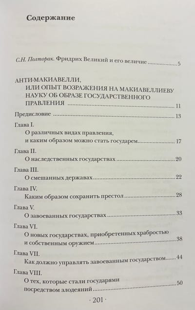 One of Frederick the Great's most brilliant works is his political treatise "Anti-Machiavelli," written in 1739–1740, when he was only 28 years old. In it, he polemicizes against Niccolò Machiavelli and his famous book "The Prince." The treatise became one of the most widely read works in enlightened Europe, arguing that the monarch's primary goal is to maintain the well-being and prosperity of his subjects. It has not lost its relevance to this day; on the contrary, it has become extremely popular as the only true way to govern a state.