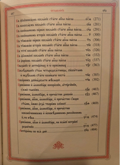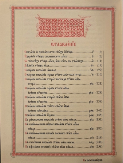 A large-format liturgical apostle, printed in two colours, contains divisions by verses, indications of weekday and festive apostolic readings for each day of the year, indications of antiphons and prokeimena.