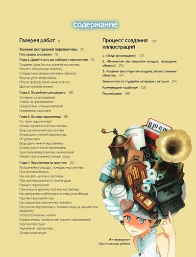 This artbook is not just a collection of works, but a full-fledged textbook on working with illustration: if in the first part only draft sketches are presented together with drawings to order, then in the second you will find a whole guide on working with composition and perspective. The artist also analyzes his own projects, detailing each step of creating art.