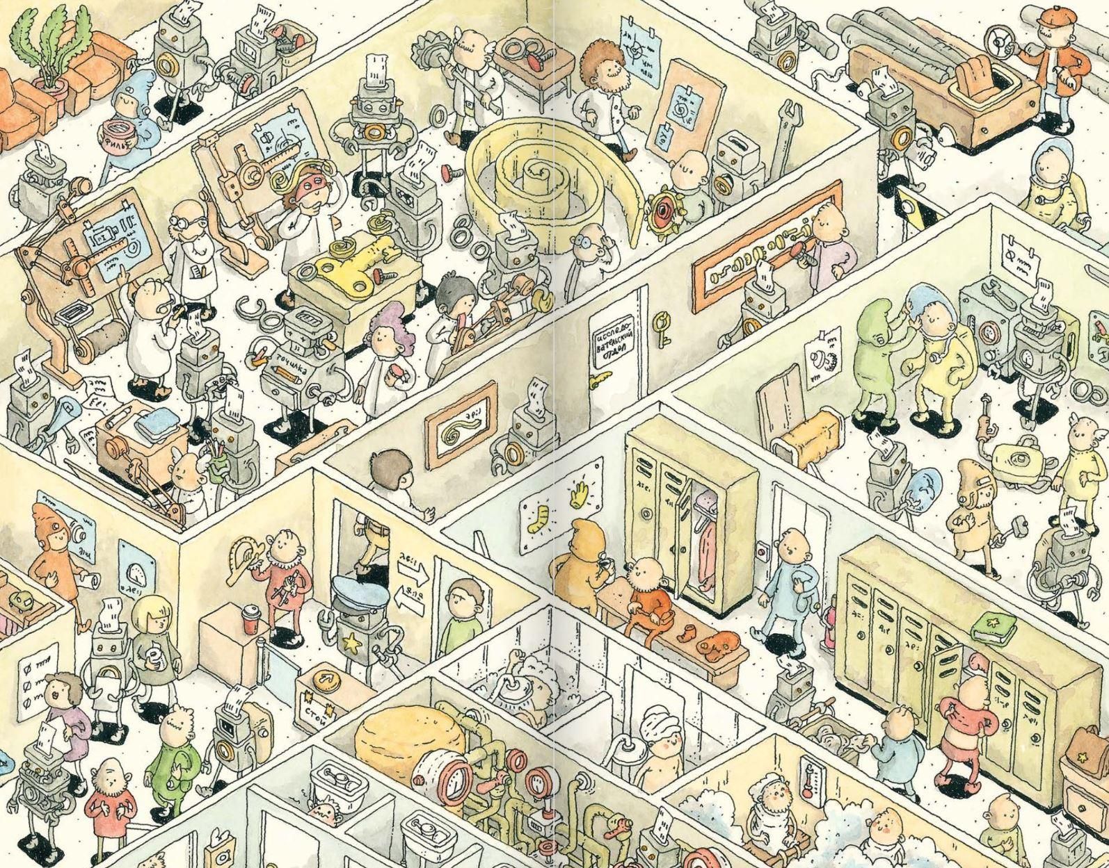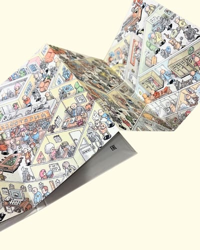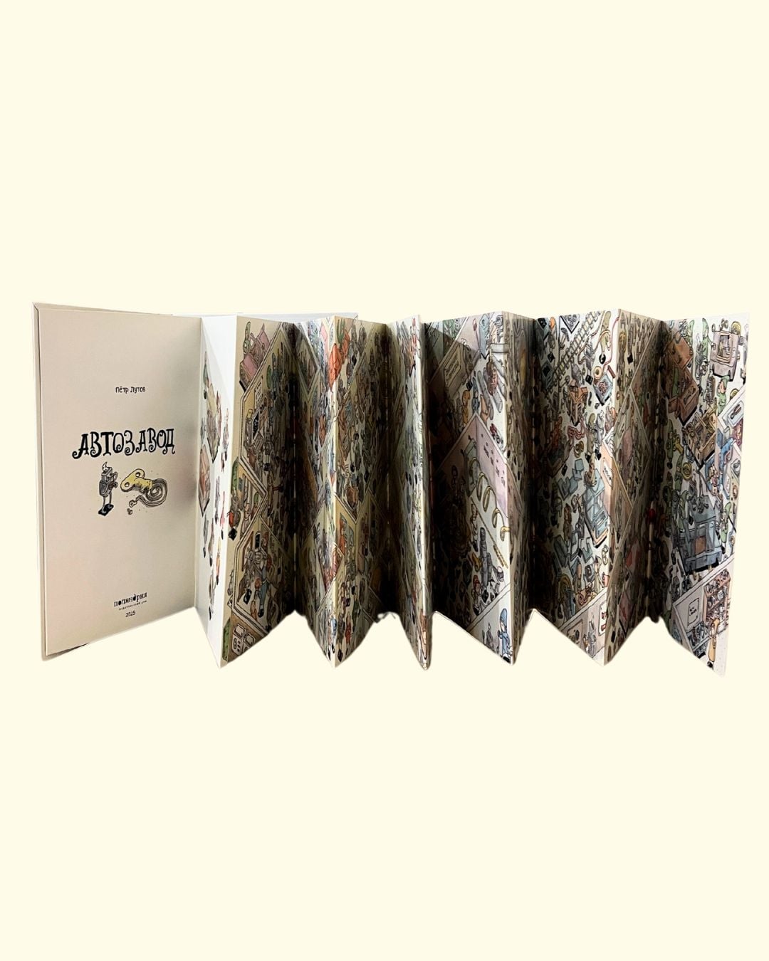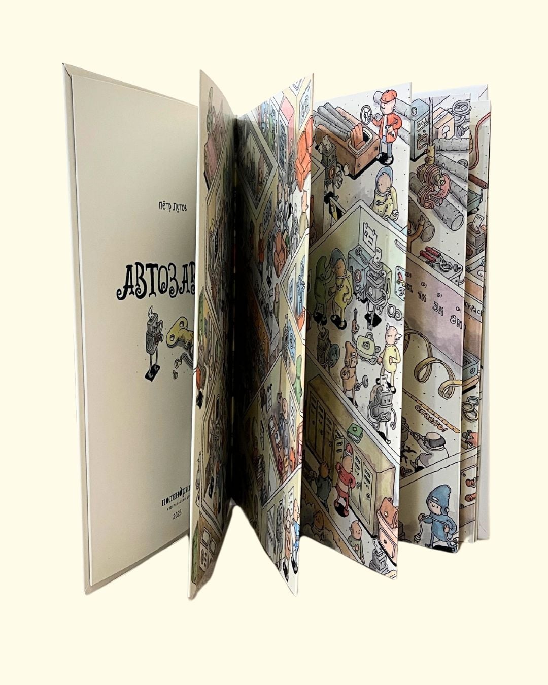 From the checkpoint to the car showroom through all the workshops - an entire car factory in a continuous four-meter pop-up book! This is both a wimmelbook and a graphic novel about the real heroes who create cars: scientists, engineers and workers. For readers of any age and their parents.