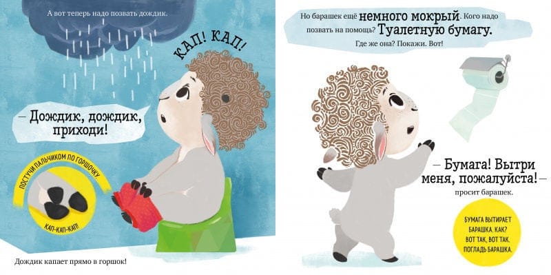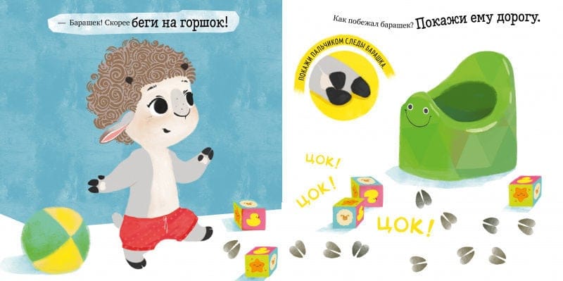 How to develop a baby's first skills? Elena Ulyeva, a talented author of children's developmental books with a combined circulation of 3 million copies and a teacher with 20 years of experience working with children, knows this. The little lamb Byasha finds it very difficult to change a comfortable diaper for a new unfamiliar object - a potty. The cheerful book will turn this important process into an exciting game. The child will make friends with Byasha the lamb and help him take off his pants, use toilet paper and wash his hands. The book will help the baby - quickly and easily part with a diaper; - become more independent; - get used to the potty.