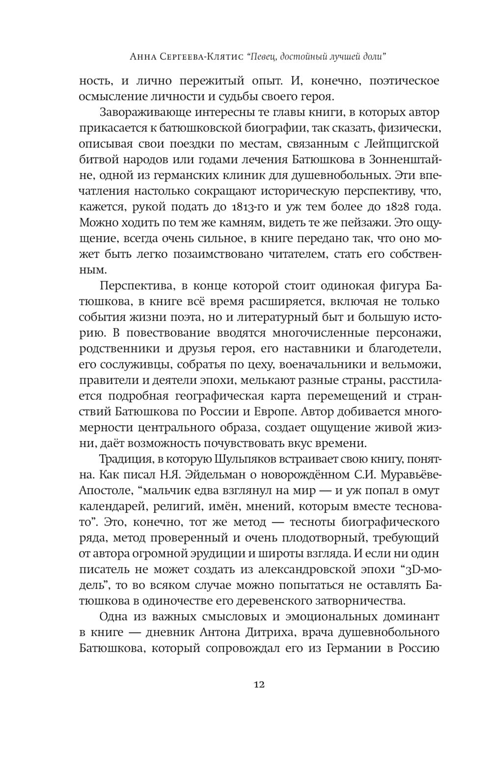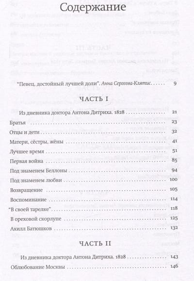 Writer Gleb Shulpyakov lovingly recreates the circumstances of personal, literary and secular life, in which the poet's existence is imprinted. His friends and relatives, favorite poets and artists, as well as literary intrigues and scandals of that time come to life on the pages of the book. Together with Batiushkov the reader travels through Germany, France, England and Italy, lives the historical events of 1812, the Battle of the Nations and the capture of Paris, which he witnessed and participated in.