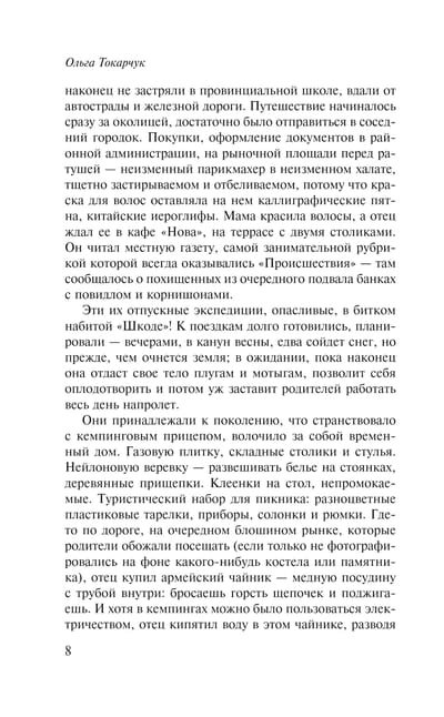 In the novel by one of the world's most original writers, Olga Tokarczuk, reflections on travel are intertwined with mysterious stories linked by the themes of death, movement, prolongation of life, and the mystery of the human body. We are all travelers in this world: some travel with a purpose, some without. Some move through time, some through space. What does it mean to be a traveler, a traveler, a runner? Olga Tokarczuk's fascinating and mind-blowing novel is a true masterpiece.