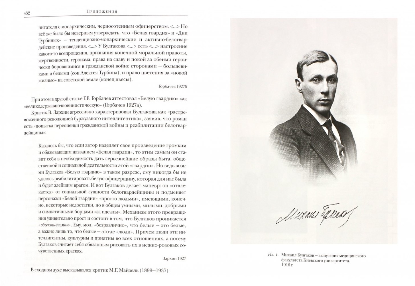 The Appendix includes fragments of fiction and documentary texts from the 1920s, directly related to the history of "The White Guard" - excerpts from the novel "Table Mountain" by Yu. L. Slezkine, the book by V. B. Shklovsky's "Sentimental Journey", and the memoirs of R.B. Gul.