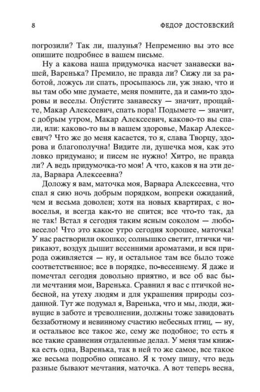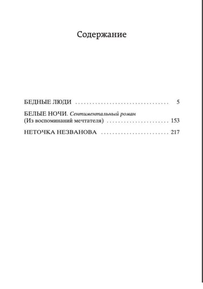The book includes works by F. M. Dostoevsky, created at the very beginning of his creative path: the debut novel "Poor People", which made the author famous overnight, as well as the stories "White Nights" and "Netochka Nezvanova". These works were written before the "catastrophe" of 1849, when the young writer was exiled to hard labor in Siberia for participating in the Petrashevsky circle, where he spent about ten years. In Dostoevsky's early works, it is still difficult to recognize the author of "Notes from Underground", "Crime and Punishment" and "The Brothers Karamazov", but they already showed the talent of a powerful and original writer, who earned rave reviews from critics and success with readers, whose works are filled with compassion and deep sympathy for the downtrodden, ridiculous, but not lost human dignity people.