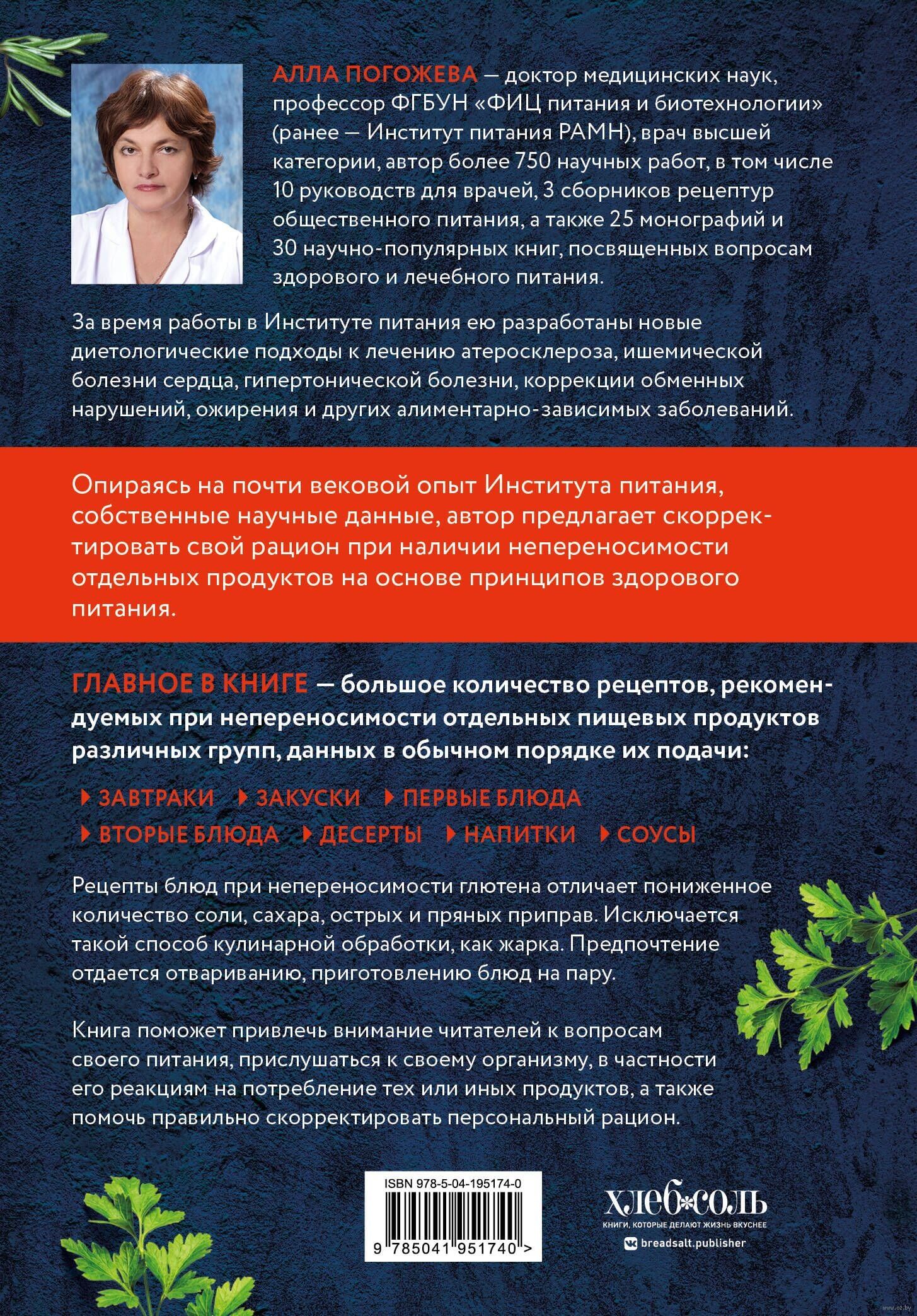Alla Vladimirovna Pogozheva is a doctor of medical sciences, professor of FGBUN FIC Nutrition and Biotechnology (formerly - Institute of Nutrition, Russian Academy of Medical Sciences), a doctor of the highest category, the author of more than 750 scientific papers, including 10 manuals for doctors, 3 collections of recipes for public catering, as well as 25 monographs and 30 popular science books on healthy and therapeutic nutrition.