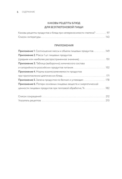 The main thing in the book - a large number of recipes recommended in case of intolerance to certain foods of different groups, given in the usual order of their presentation - breakfasts, appetizers, first courses, second courses, desserts, drinks, sauces. Recipes for dishes with gluten intolerance are characterized by a reduced amount of salt, sugar, hot and spicy seasonings. Such a method of culinary processing as frying is excluded. Preference is given to boiling, cooking dishes on steam.
