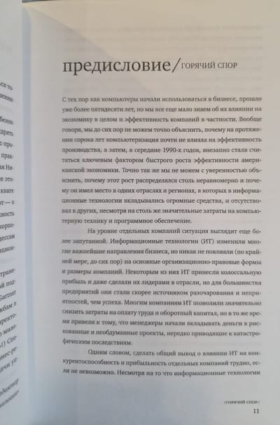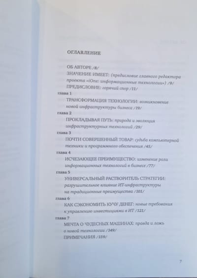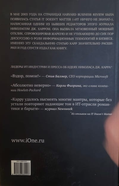 This book has caused heated debate in the West among both IT practitioners and consultants. The reason for the debate was the author's special opinion, who believes that the huge investments of enterprises in information infrastructure no longer provide an excess return, and in some cases are not even necessary. In this regard, the author advises business and IT managers to follow four rules when making such expenditures. Try to spend less. Follow the leaders and do not repeat their mistakes. Calculate innovation risks in advance. Focus on eliminating shortcomings, and not on exaggerating hypothetical possibilities.