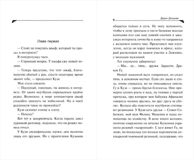 Lord of laptops and king of the keyboard, computer genius agency "Tyuh" Kuzya met Alyona in the network game "War of the Two Countries". For almost a year Kuzya went to visit her, everything was fine. And one day the girl suddenly sends him a farewell e-mail and cuts off all contacts. The guy falls into despondency and can no longer work normally. So Daria decides to find the girl and find out what prompted her to such a rapid and unjustified breakup. Well, what could be easier than to track down a feisty girl? Easy walk! Dashenka found it, found it... But not what she wanted, but jealousy, death, murder and betrayal.