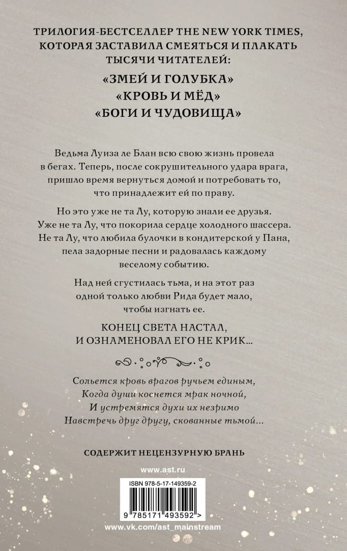 The thrilling conclusion to the trilogy begun by the novels The Serpent and the Dove and Blood and Honey. For all fans of Sarah J. Maas and Jennifer Armentrout. Witchy witch Louise le Blanc has spent her entire life on the run. But now it's time to come home and claim what is rightfully hers. But Lou is no longer the same as she was before - darkness has descended over the girl's head, and this time love alone will not be enough to bring Lou back to the light ...
