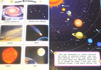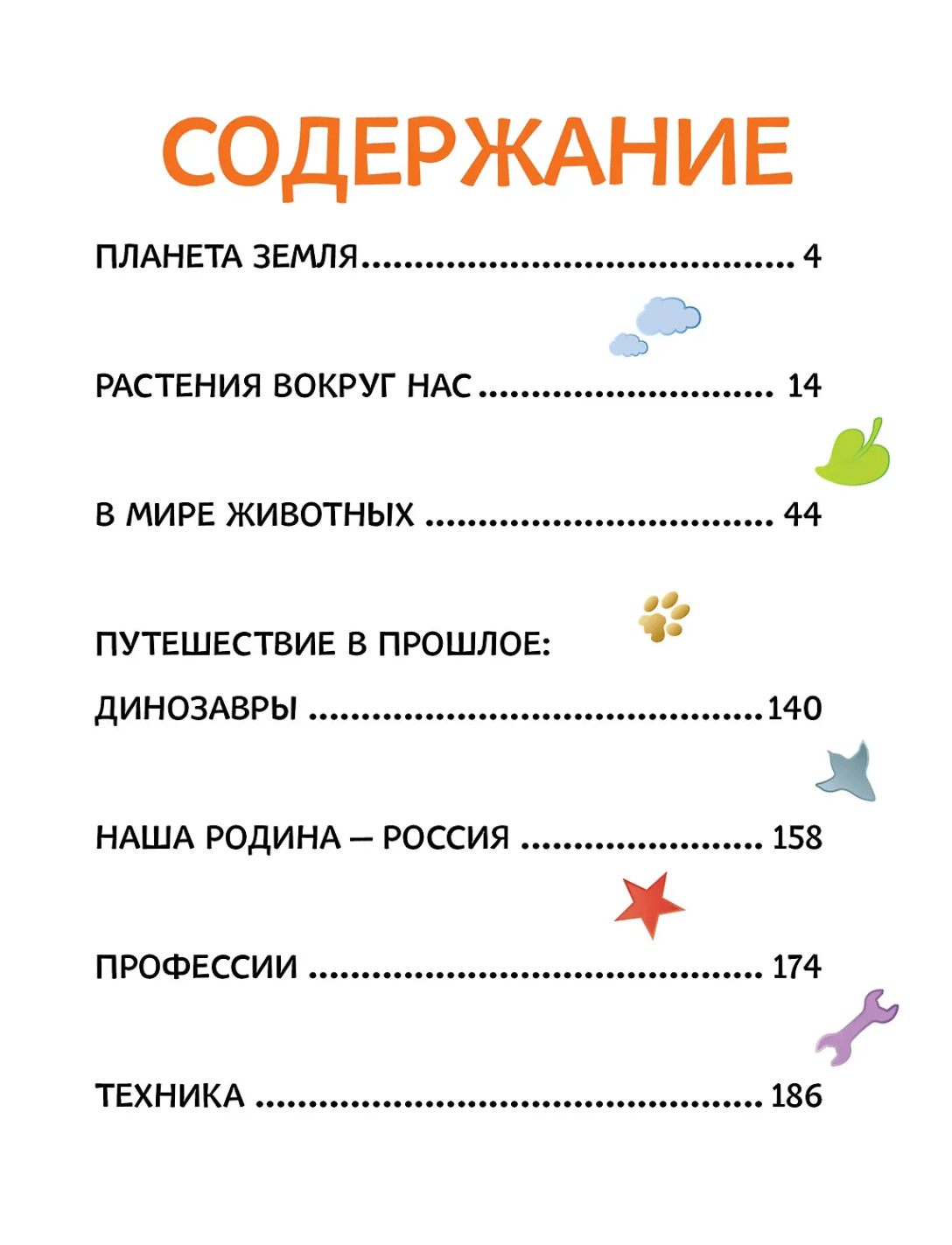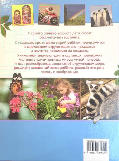 A colorfully illustrated resource for the early development of children aged 2-4. This publication contains detailed illustrations with captions and brief, easy-to-understand explanations. This encyclopedia will help your child memorize a variety of concepts and objects, develop a basic vocabulary, broaden their horizons, and develop visual and auditory memory.