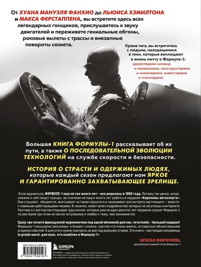 Three giants of French journalism under one cover is a great gift for us, the readers! "Formula 1" is saturated with emotions, and it can be difficult, while it is very important to remain objective in assessing events. And for this you need to look at everything from different angles. This book is a real treasure, la graale sacré, for everyone who is in love with Formula 1". - Natalia Fabrichnova, Russian F1 commentator