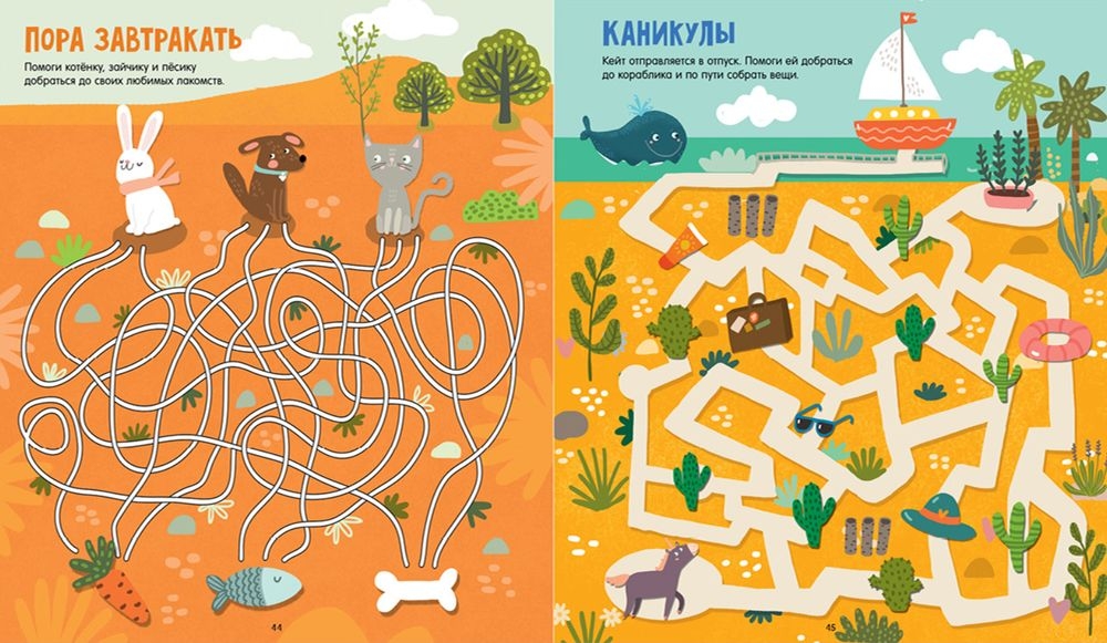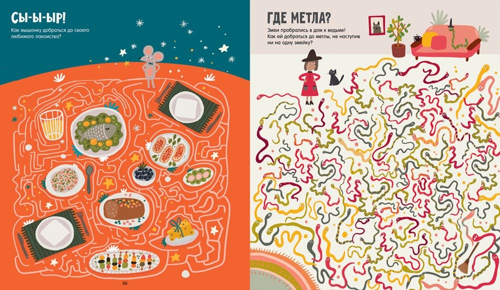 This book is a real treasure for those who love various mazes, walkers and wanderers. Here you can walk along the paths of an outlandish garden, sail on a steamship on the ocean, fight aliens and find your way home. Grab your pencils and develop your logic, memory and imagination.
