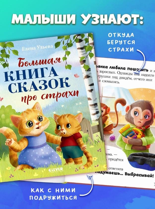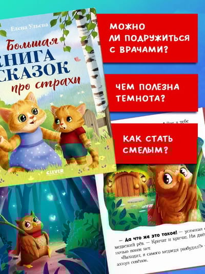 The heroes of the book "The Big Book of Fairy Tales about Fears" are charming little animals who, like all children, are afraid of something: the dark, doctors, or a scary scarecrow in the yard. Therapeutic educational fairy tales for kids will tell you where fears come from and help you make friends with them.