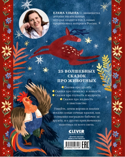 The 25 magical tales are adorned with stunning, colorful illustrations by Ekaterina Speranskaya, and the cover of the children's book "The Big Book of Magical Tales" sparkles with its glittering foil finish.