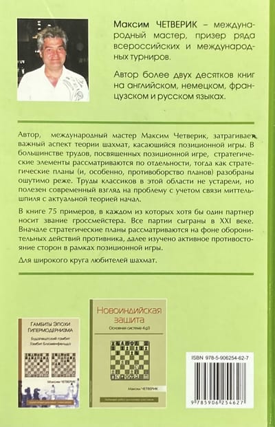 The author of the book, International Master Maxim Chetverik, touches upon an important aspect of chess theory concerning positional play. In most works devoted to positional play, strategic elements are considered separately, while strategic plans (and, especially, the confrontation of plans) are analyzed much less frequently. The works of the classics in this area are not outdated, but a modern view of the problem is useful, taking into account the connection of the middlegame with the current theory of openings.