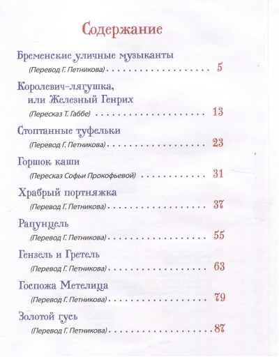 This book includes the most famous fairy tales collected by German folklorists Wilhelm and Jacob Grimm: "The Buskers of Bremen," "Rapunzel," "Hansel and Gretel," "Mrs. Blizzard," and many others. The texts are printed in classic translations. Featuring colorful illustrations by Vitaly Dudarenko, this book makes a wonderful gift for any fairy tale lover.