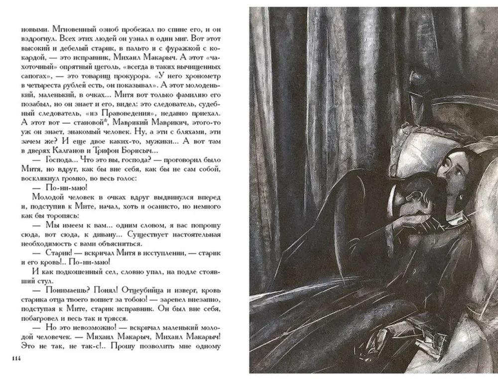 The novel "The Brothers Karamazov" is the pinnacle of Dostoevsky's work, one of the most famous works of the genius writer. It had the strongest impact on the entire world culture, modern philosophy and literature. The novel continues to preoccupy minds even now, in a very difficult era for humanity. This story of one family with complex inner ties and spiritual quest covers the most important moral questions. But each member of the family chooses his own way of searching for answers. Artist Vladimir Minaev portrays the characters of the novel as living, full-blooded people, who are so easy to imagine while reading.