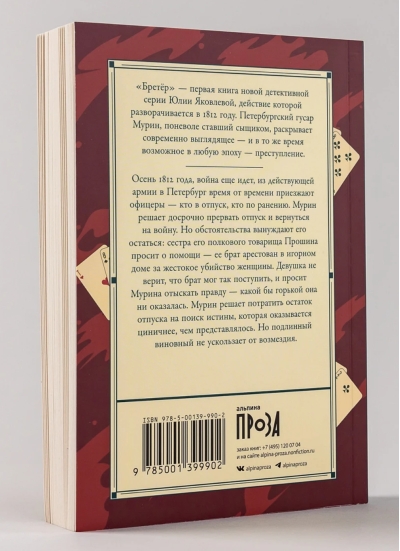 "Breter" is the first novel in Yulia Yakovleva's new detective series, set in the early 19th century. The author evokes the era with the atmosphere of a modern hard-boiled detective: a Russian captain of 1812, unwittingly turned detective, solves a crime that seems contemporary—yet possible at any time.